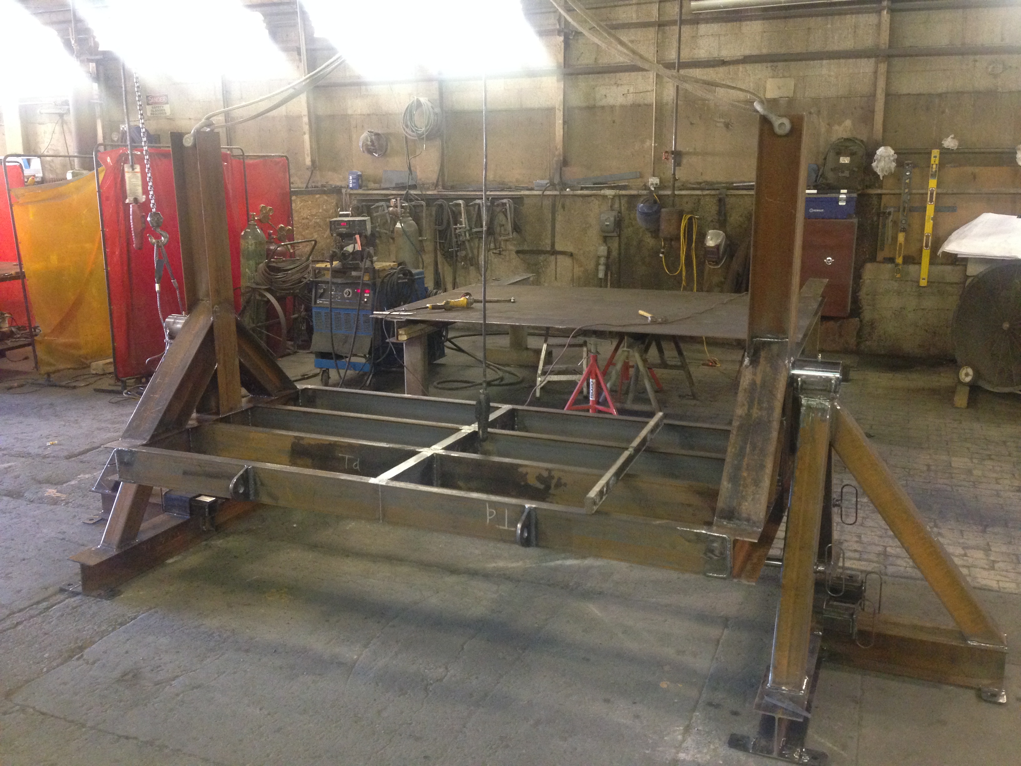 We had a customer that was in need of a expedited item. They were in the process of receiving 1,000's of special furnace refractory blocks. The problem was that these blocks were shipped in the wrong vertical direction than how they needed them. The fragility of the blocks and the weight (about 1,100lbs each) meant that they couldn't just flip them over. We worked through the weekend to design and fabricate this special turntable. This allowed them to safely flip the blocks.